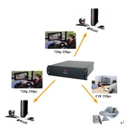 POLYCOM視頻會議系統中的任何一臺終端都可以直接呼叫系統中的另一臺終端,建立雙向連接,進行會議和交流。當采用128Kbps帶寬是就可以實現2CIF的動態圖像,384Kbps帶寬是就可以實現4CIF的動態圖像,512Kbps帶寬是就可以實現25/fps的1280×1080P的動態圖像,832Kbps時就實現了50/fps的1280×1080P的動態高清圖像。會議的音頻協議更采用目前電視會議領域頂級的Siren22音頻算法,采用22KHz的音頻采樣,音頻質量超越CD水平。