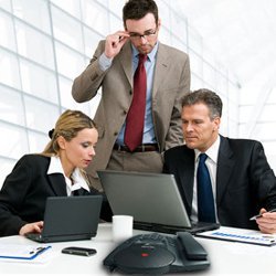 在當今社會中,許多居家辦公者和小型的商業機構都需要在自己的辦公桌上使用高質量、高性能的電話會議系統。現在,Polycom公司隆重推出一種多功能的SoundPoint Pro 商務電話,給使用者帶來一流的新型設計和高質量的會議效果。SoundPoint Pro將單一的商業電話與聽筒和耳機成為一體化,在電話會議上為您提供水晶般清晰的談話效果和免提的功能。 |